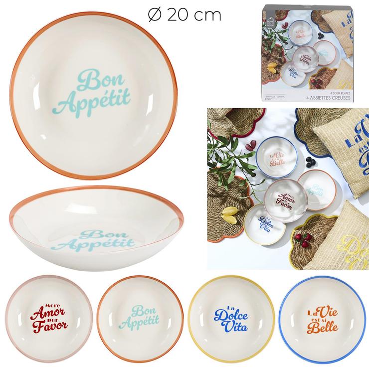 Assiette a soupe branche gres decoree forme coupe 20cm