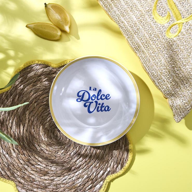 Assiette a soupe gres decoree forme coupe jaune 20cm