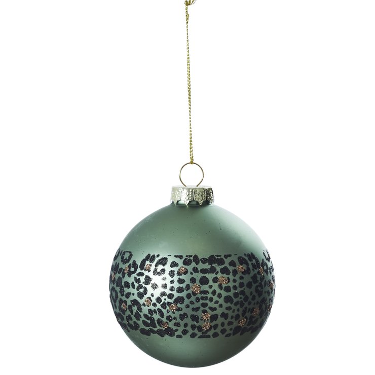 BOULE NOEL VERRE VERT LEOPARD D.8CM
