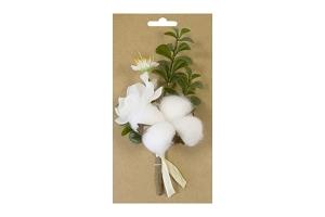 BOUQUET DE COTON CERISIER ET BUIS SUR CARTE BLANC