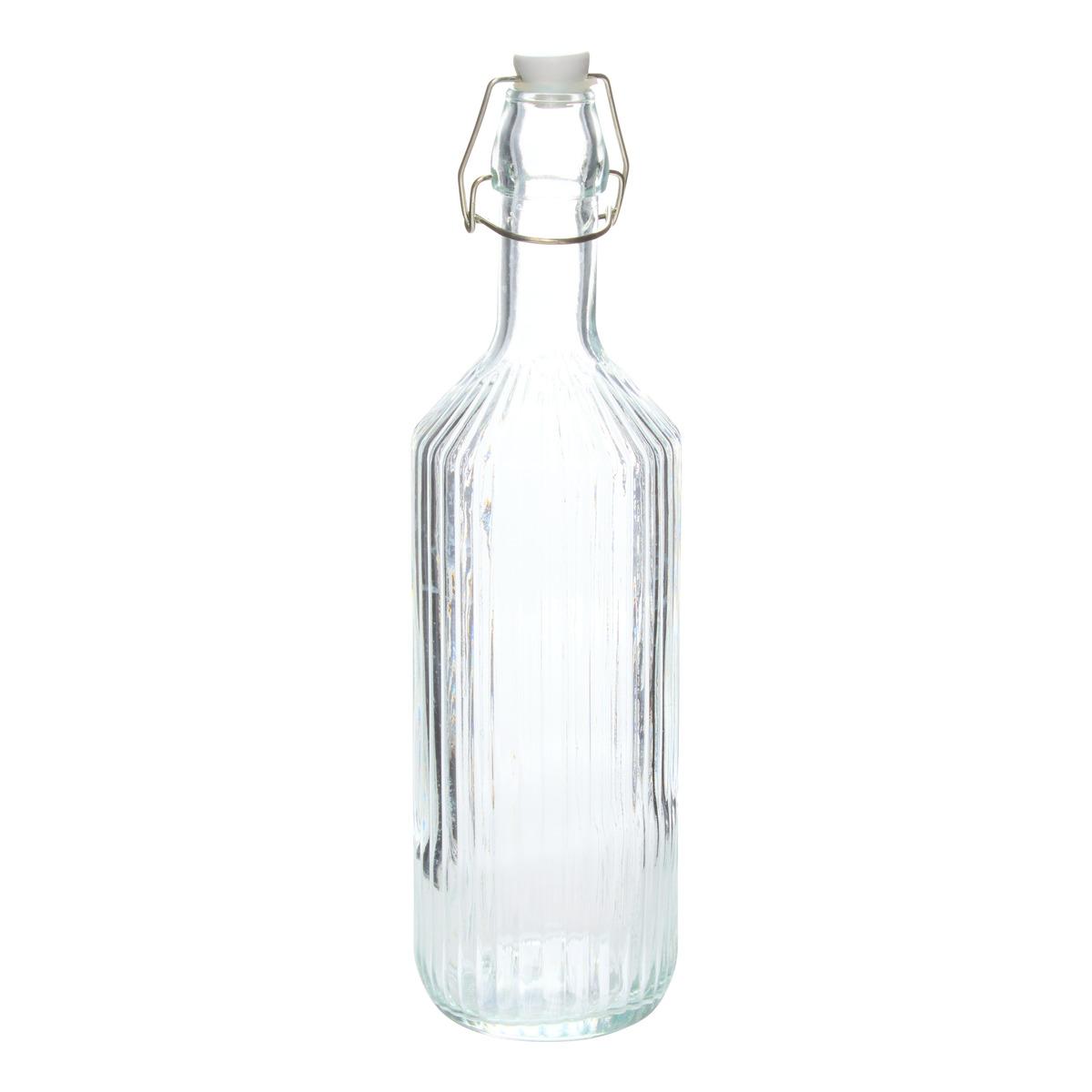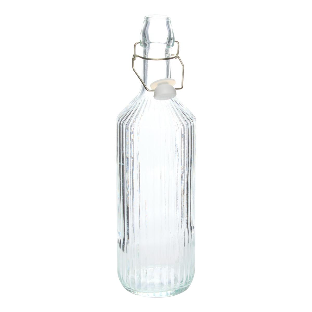 Bouteille 1.1l verre transparent striee