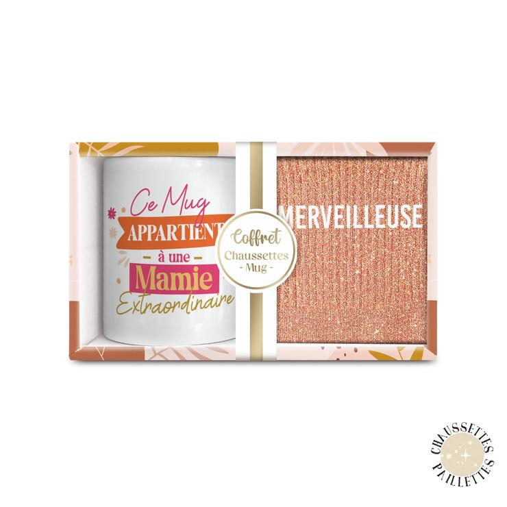COFFRET MUG CHAUSSETTES PAILLETTES AFFECTIF MERVEILLEUSE