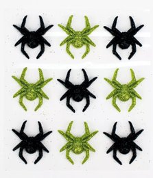 Sticker araignee acrylique glitter vert. noir 3 cm x 9 pcs