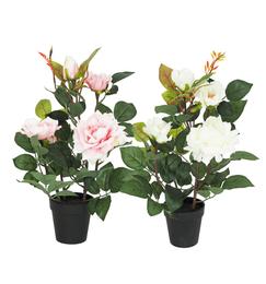 Rosier en pot plastique h35cm rose et blanc