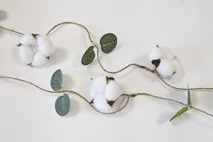 GUIRLANDE DE FLEURS DE COTON ET EUCALYPTUS 1.50M BLANC