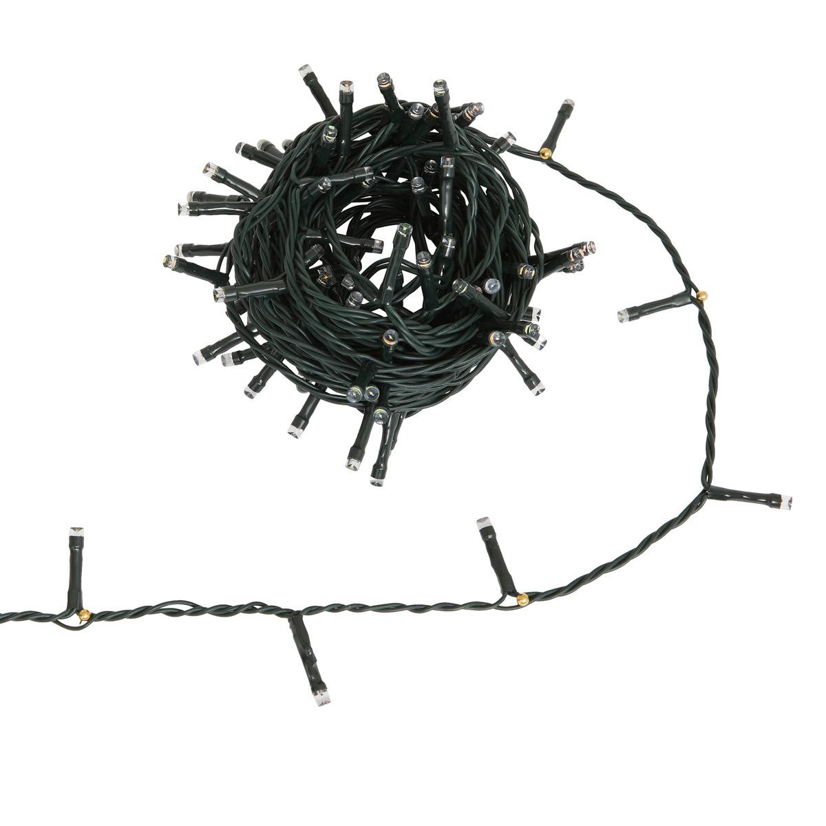Guirlande exterieur 10m 100leds blanc chaud fil vert