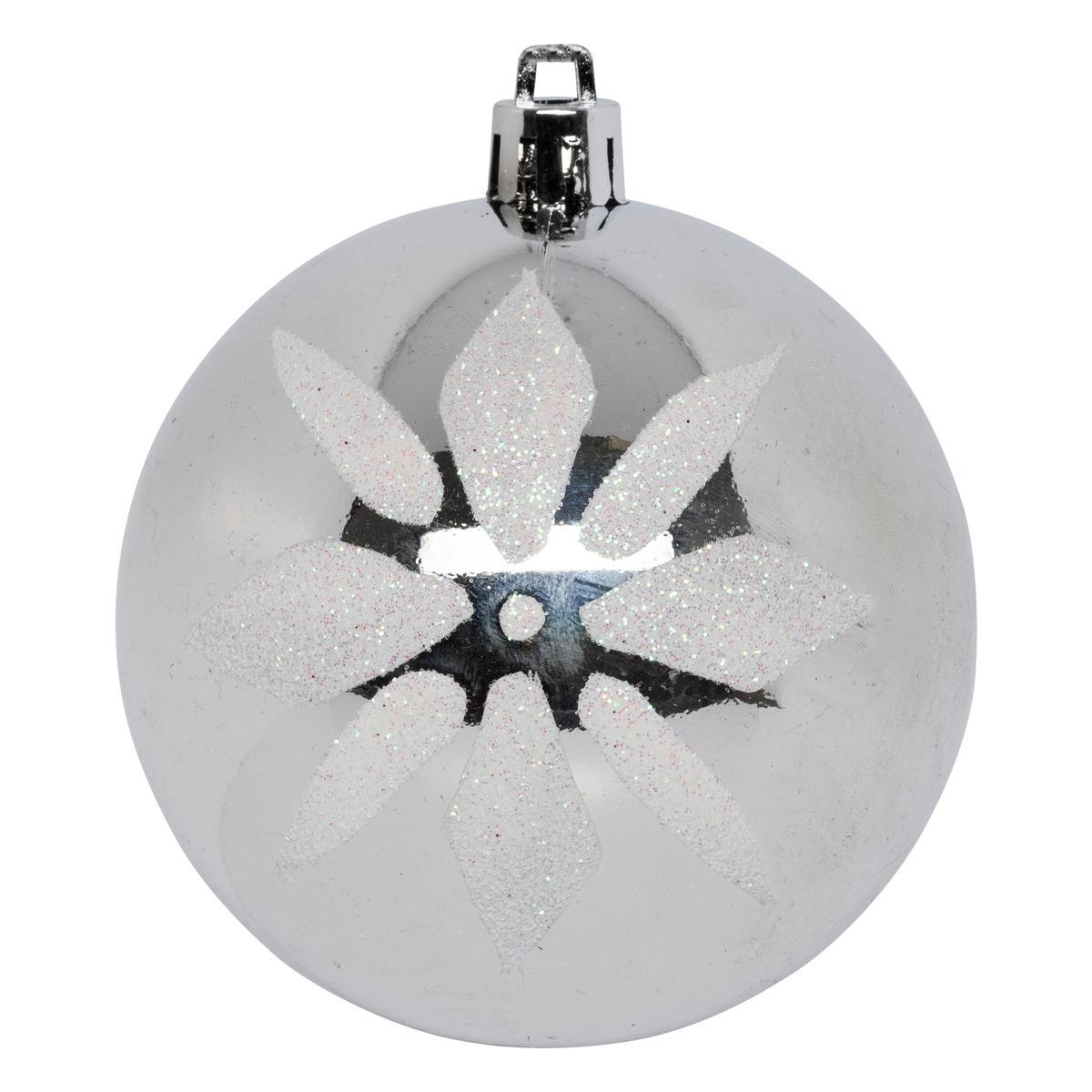 Boule de noel 60mm x12 pieces neige argent blanc