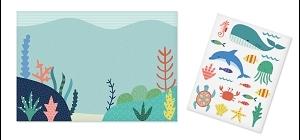 KIT DECOR LES ANIMAUX MARINS AVEC GOMMETTES 22X32CM