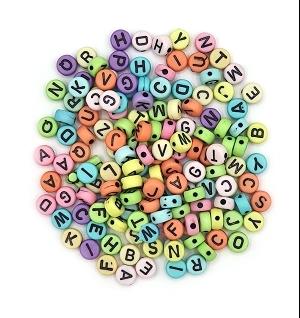 PERLES ACRYLIQUE RONDES ALPHABET PASTEL 7X0.3MM X40G