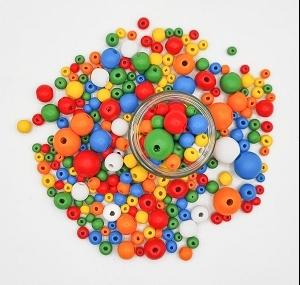 PERLES RONDES BOIS MULTICOLORES 0.8 A 2.3CM X385 PIECES