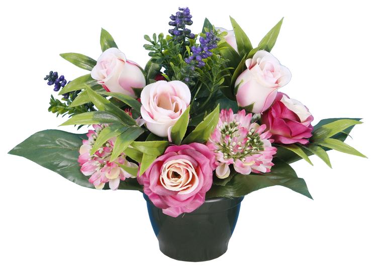 POT BOUTON ROSE ZINNIA LAVANDE