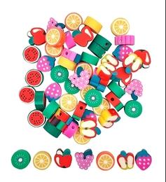 Perles fantaisie pate polymere fruits 1x0.4cm x60 pieces