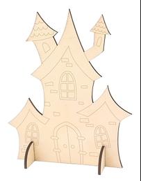 Maison hantee bois a decorer et socle 13x15.3cm