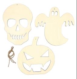 Formes bois halloween a suspendre 12.5 a 16.5cm x3 pieces