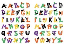 Gommettes lettres halloween 2 a 3.5cm sur 4cm x66 pieces