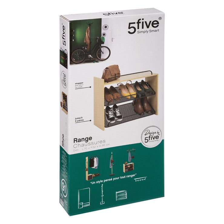 Range chaussures 3 tiroirs 18 paires bois noir naturel