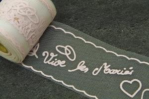 ROULEAU FLOQUE VIVE LES MARIES 8 CM X 10M ROSE