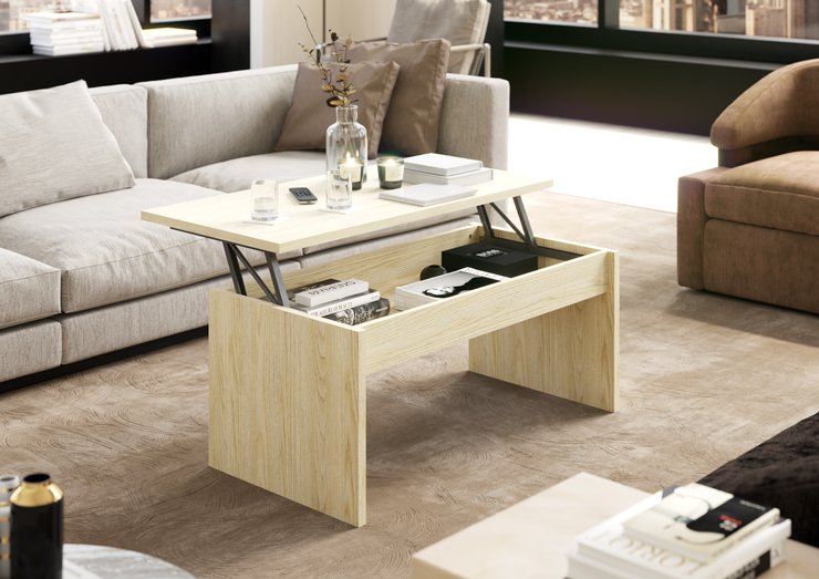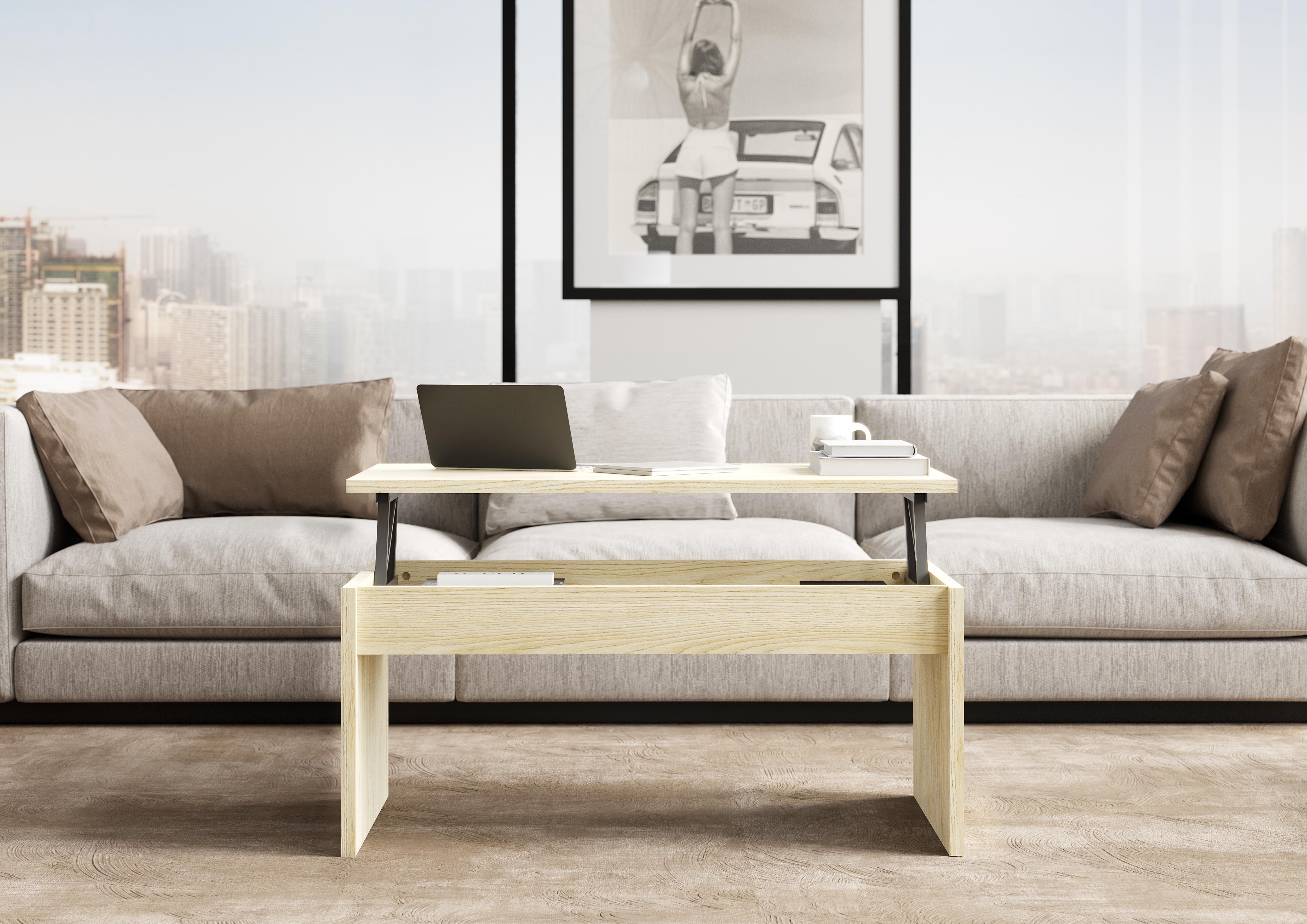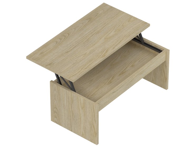 TABLE AVEC PLATEAU RELEVABLE MELAMINE BOIS CLAIRE