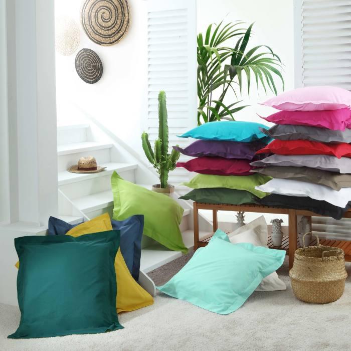 TAIE D OREILLER VOLANT PLAT 50X70CM UNI 57 FILS LINA KAKI