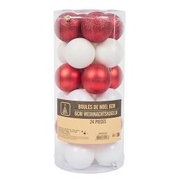 Boules de noel 6cm 24pcs rouge et blanc