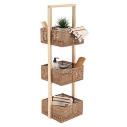 Meuble bois 3 panieres papier naturel mocha